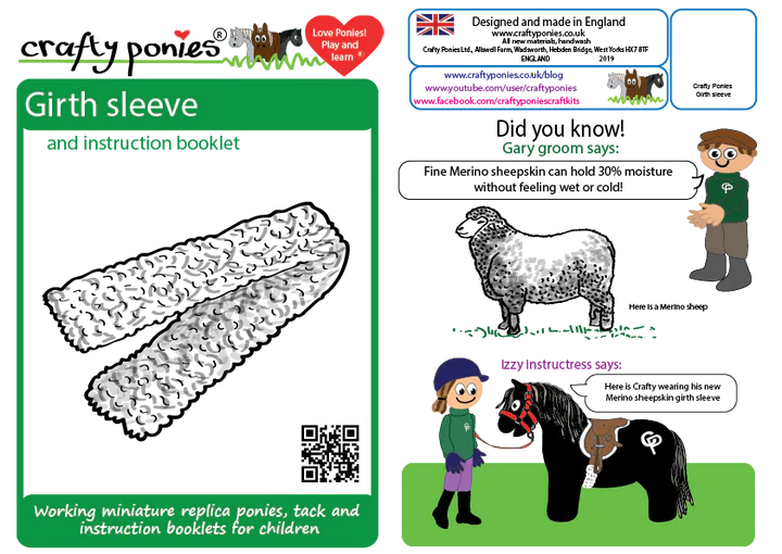 Crafty Ponies saddle cloths and girth sleeves come with a full colour, fully illustrated A5 booklet full of information, putting them on, taking them off, cleaning them and much more. Children can learn lots about saddle cloths and girth sleeves with Crafty Ponies!