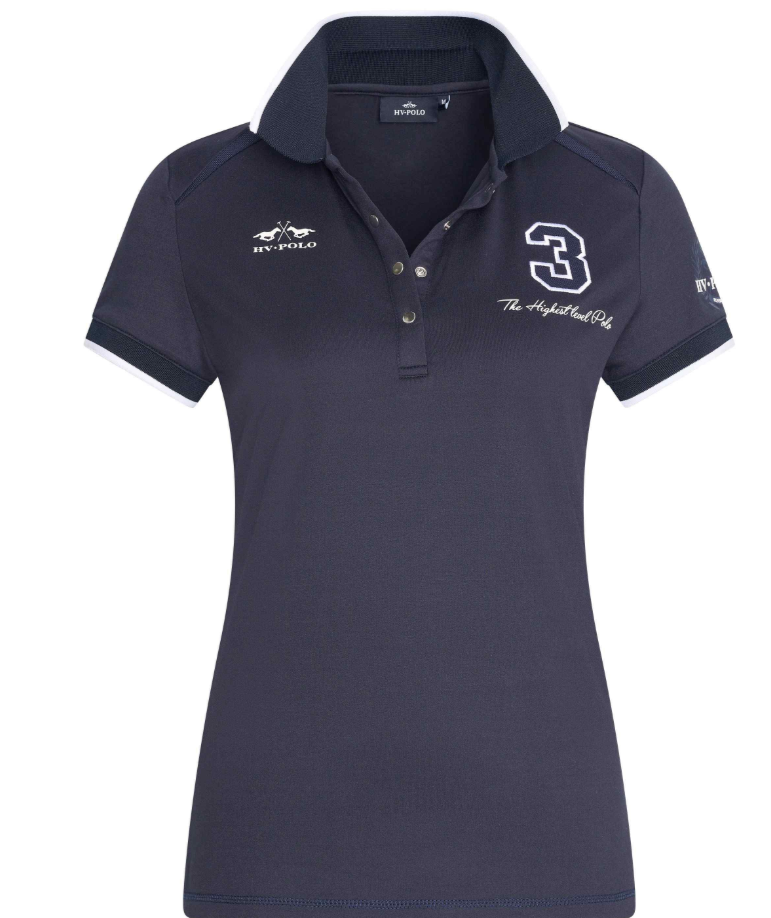 Sporty polo shirt made of a modern material mix and net inserts on the shoulders. The elastic material made of a functional 4-way stretch material dries quickly, and it is breathable to allow for perfect air circulation and the right body temperature. The finely-ribbed polo collar is just as rich in contrast as the ripped cuffs. The beautiful V-cut with practical, shiny push-buttons gives this shirt a female touch. The tailored model features a small logo print on the right side of the chest. The artwork on the left side of the chest is a combination of embroidery, mesh, and print. Parts of this logo can be found on the left sleeve and as a text print on the back of the collar.