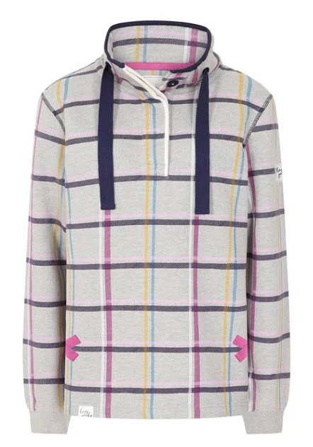 Lazy Jacks Relaxed Fit Button Neck Sweatshirt - Plaid Grey Marle