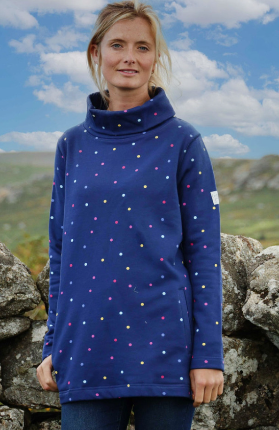 Lazy Jacks LJ20 Printed Roll Neck Sweatshirt - Polka Dot - Twilight