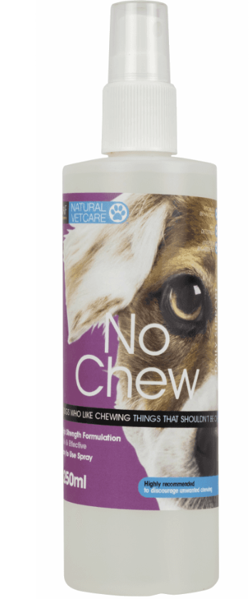 NAF Natural Vet Care Canine No Chew 250ml. No Chew is a safe effective deterrent spray for using as part of behavioural training to dissuade unwanted chewing in dogs and cats. Highly recommended for puppies, kittens and adults.