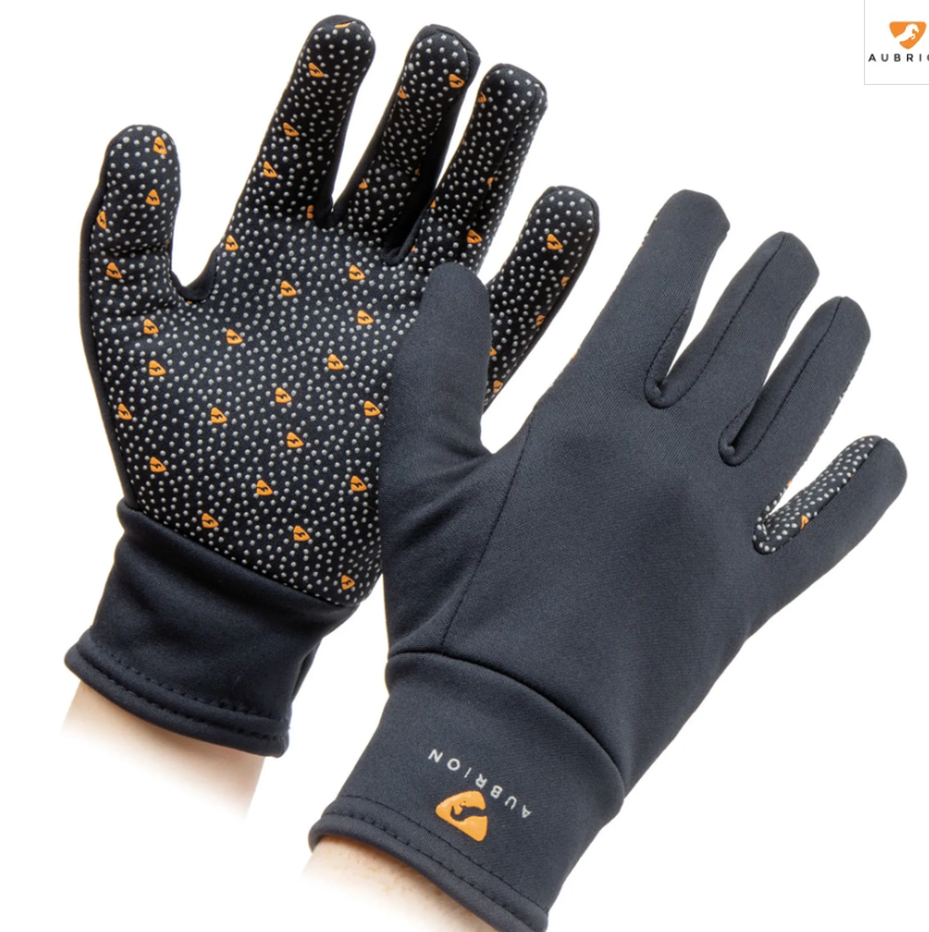 A warmer pair of everyday riding gloves, ideal for colder weather. Silicone grip palms enable greater control on the reins, fleece inners trap warmth. Aubrion prints.