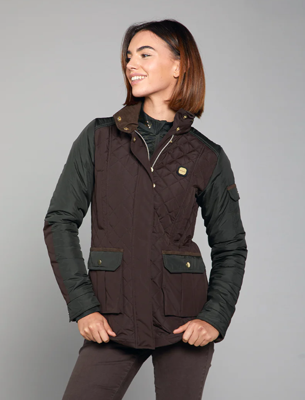 This style has a shaped, feminine silhouette with back vents and features a quilted body and contrast colour sleeves. Bellow pockets, handwarmer pockets and a sleeve pocket mean ample space for valuables.